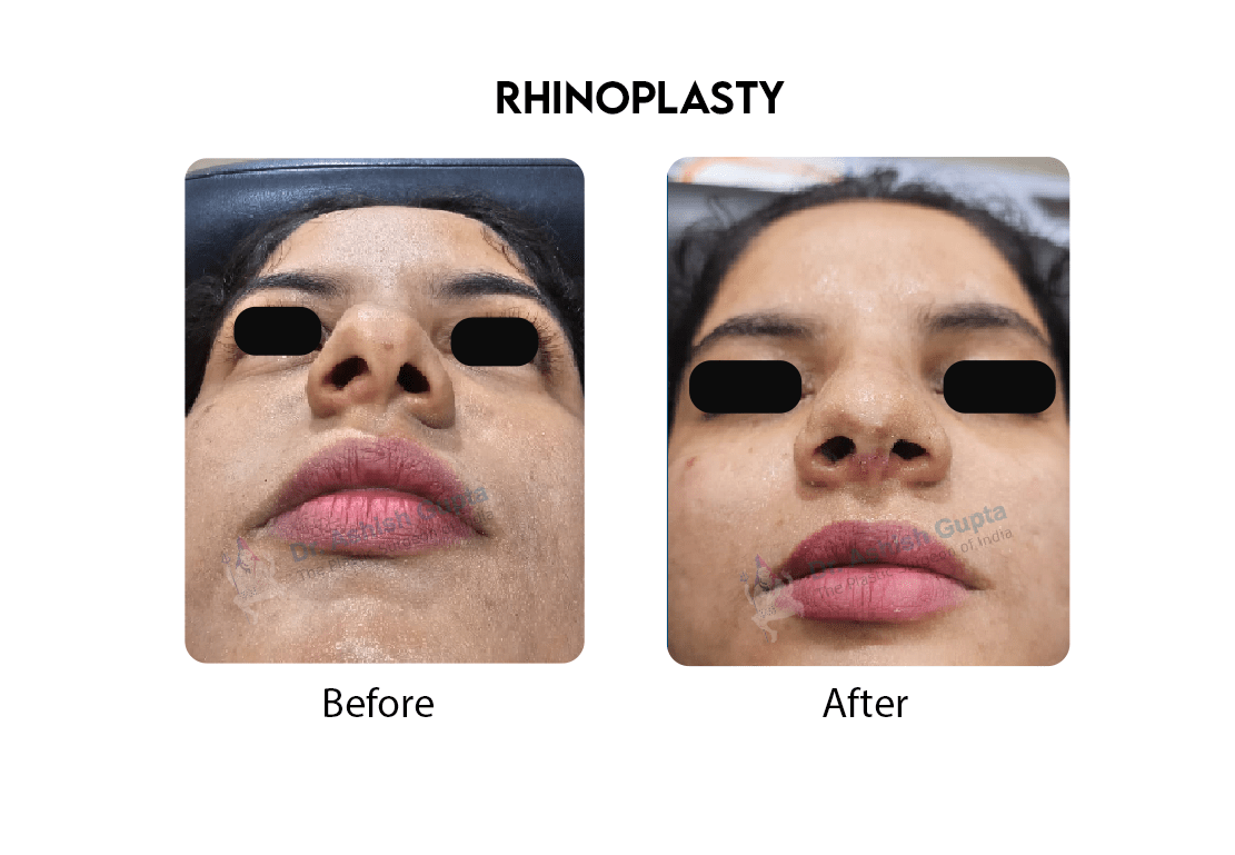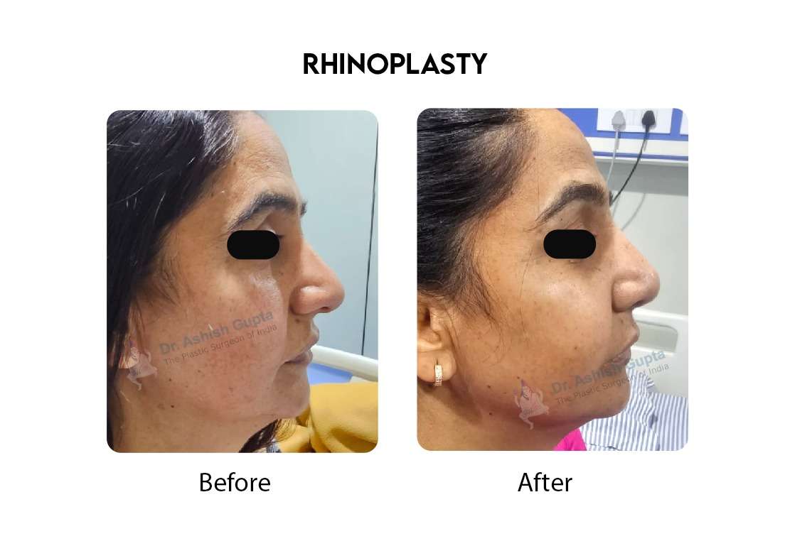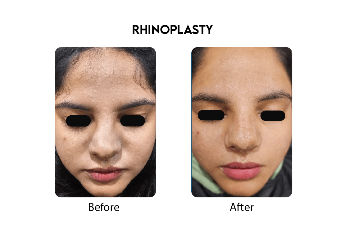 Rhinoplasty, commonly known as a nose job, is a cosmetic surgery procedure aimed at improving the appearance of the nose. The procedure involves reshaping the nose by removing or adding cartilage or bone, resulting in a more proportionate and aesthetically pleasing nose. It can also improve breathing function in some cases. The results are immediate and long lasting and minor touch up procedures if needed can be done after 6 to 9 months.